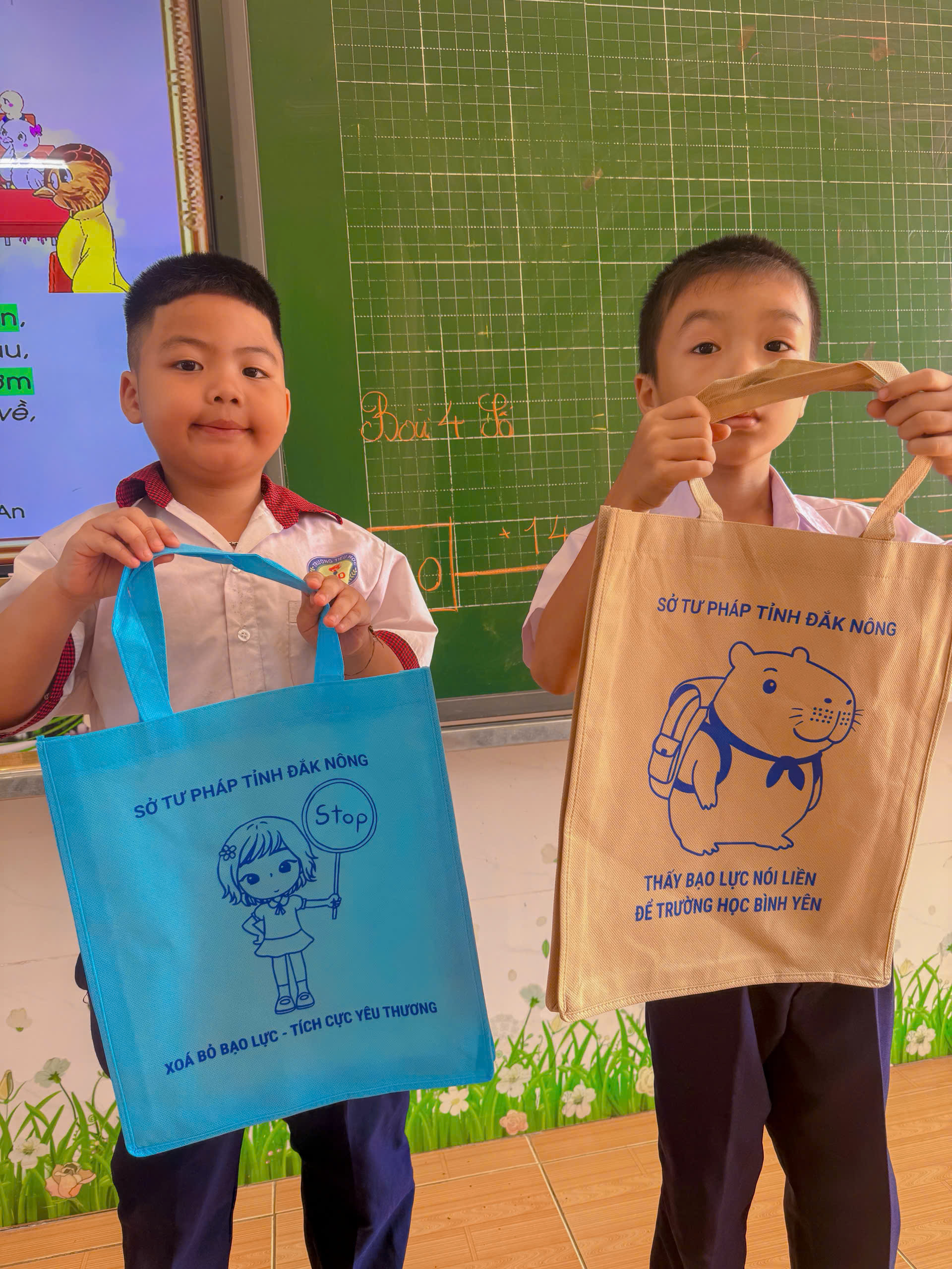 💐💐💐Bên cạnh đó những chiếc túi xinh xắn có in thêm những khẩu hiệu ” Xóa bỏ bạo lực – Tích cực yêu thương” – “Thấy bạo lực nói liền để trường học bình yên” phần nào giúp xóa bỏ tệ nạn Bạo lực học đường trường học. Thay mặt nhà trường dành lời cảm ơn chân thành và lời chúc sức khỏe đến cô giáo và quý Cơ quan thuộc Sở Tư Pháp tỉnh Đắk Nông.❤️