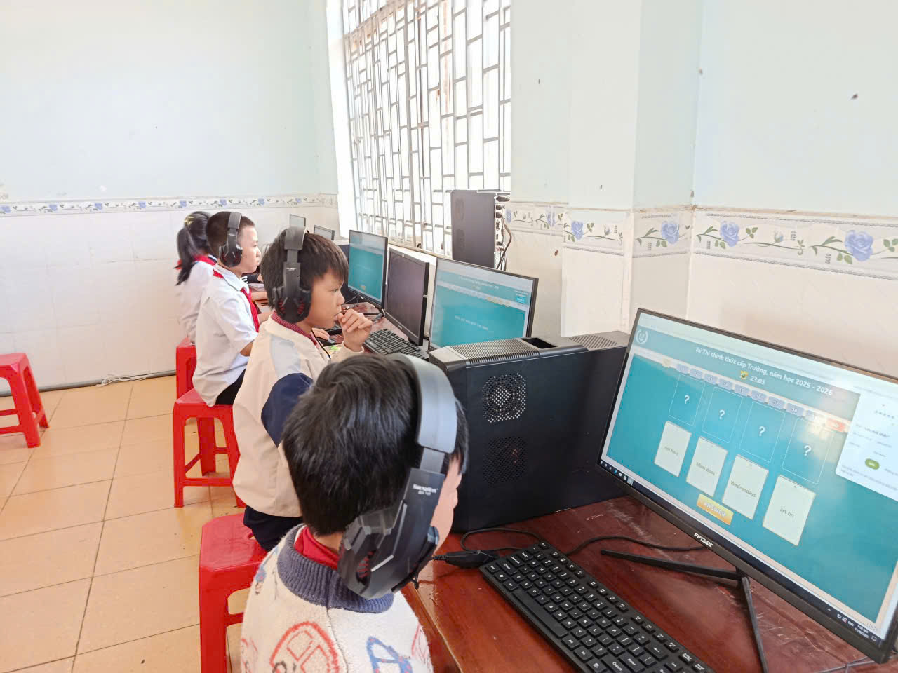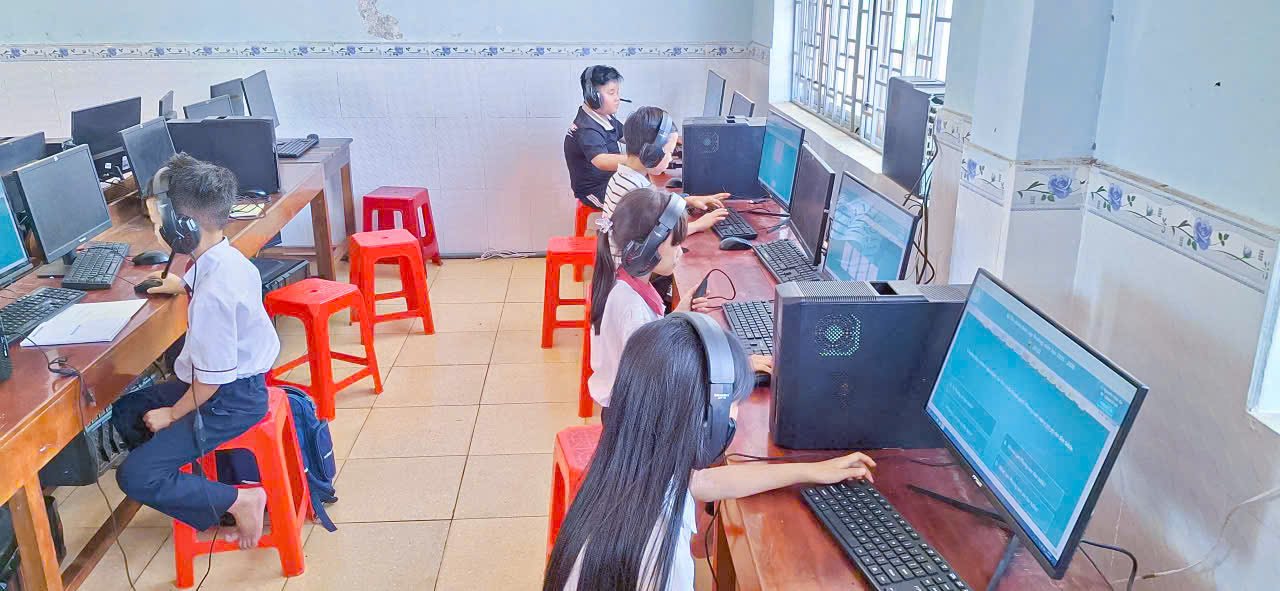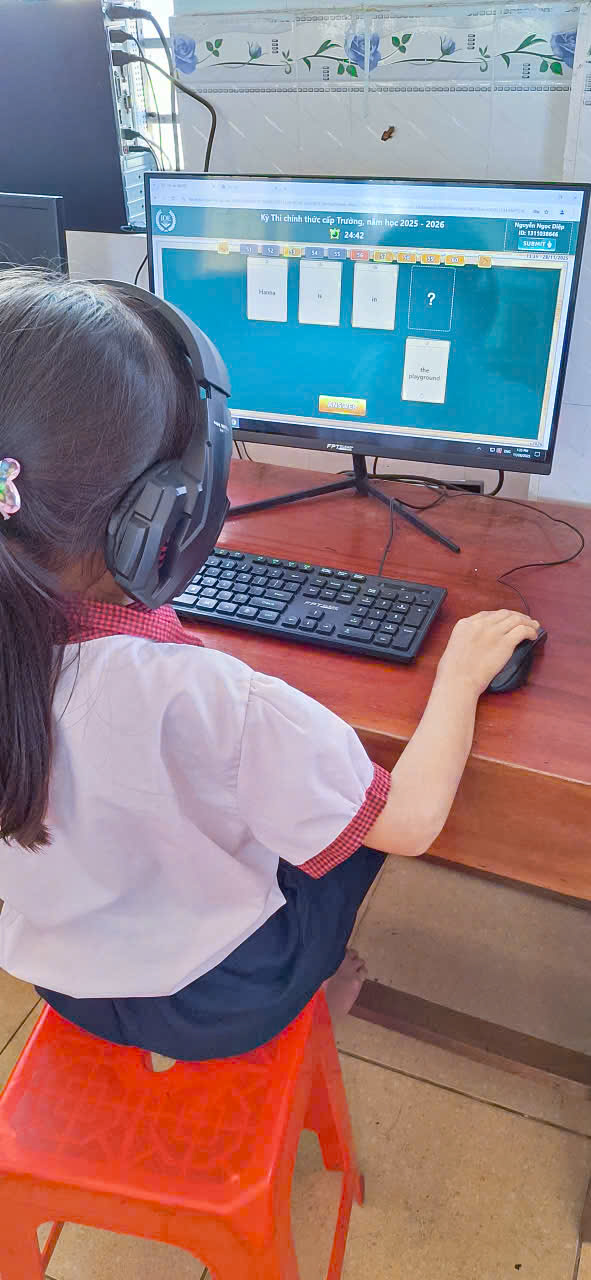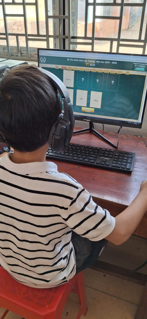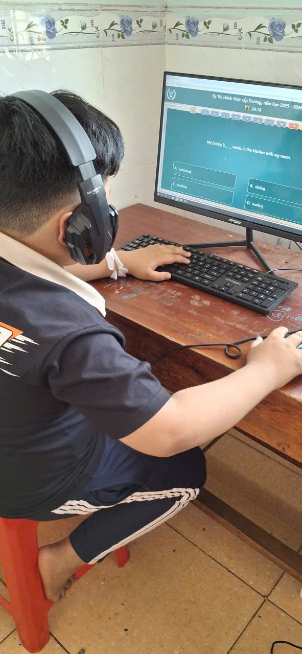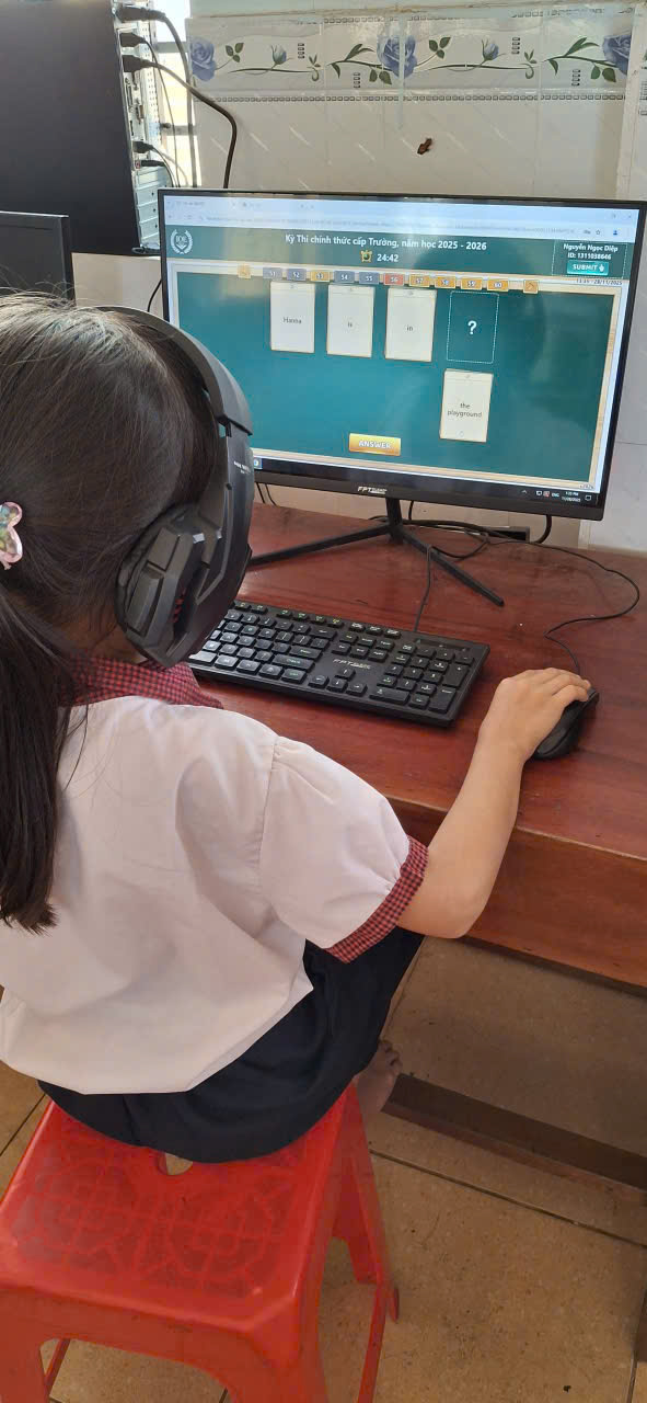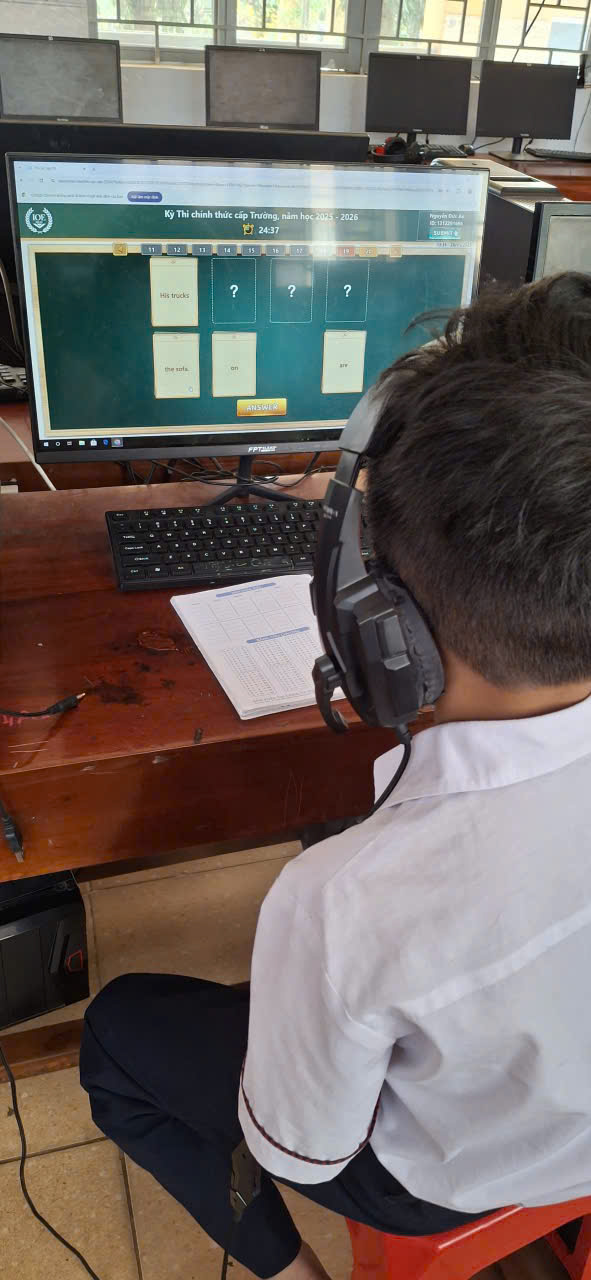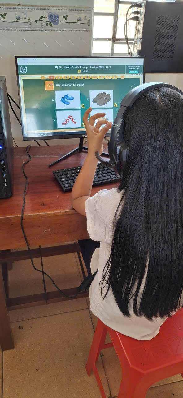 🩷Các em học sinh đều thực hiện bài thi nghiêm túc, thao tác thành thạo trên máy tính, thể hiện kỹ năng nghe – đọc – phản xạ tiếng Anh tốt. Nhà trường đã chuẩn bị đầy đủ cơ sở vật chất, phòng máy và đường truyền Internet ổn định để kỳ thi diễn ra an toàn, khách quan và đúng quy định.