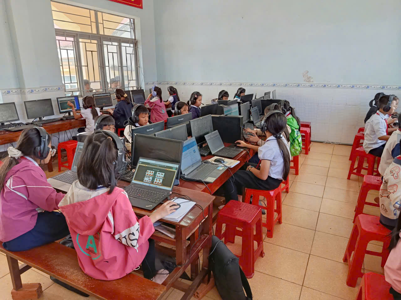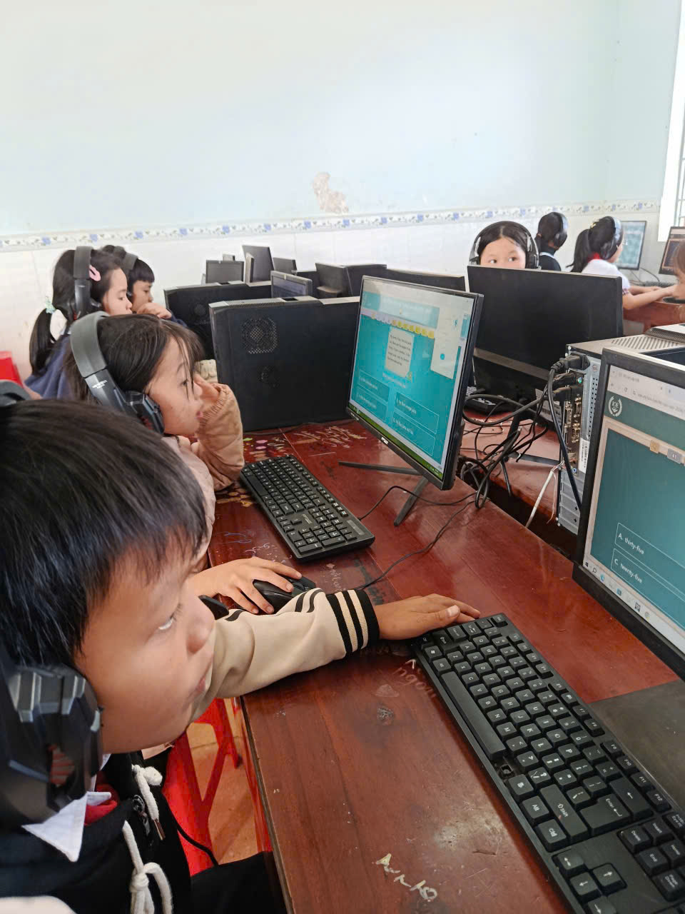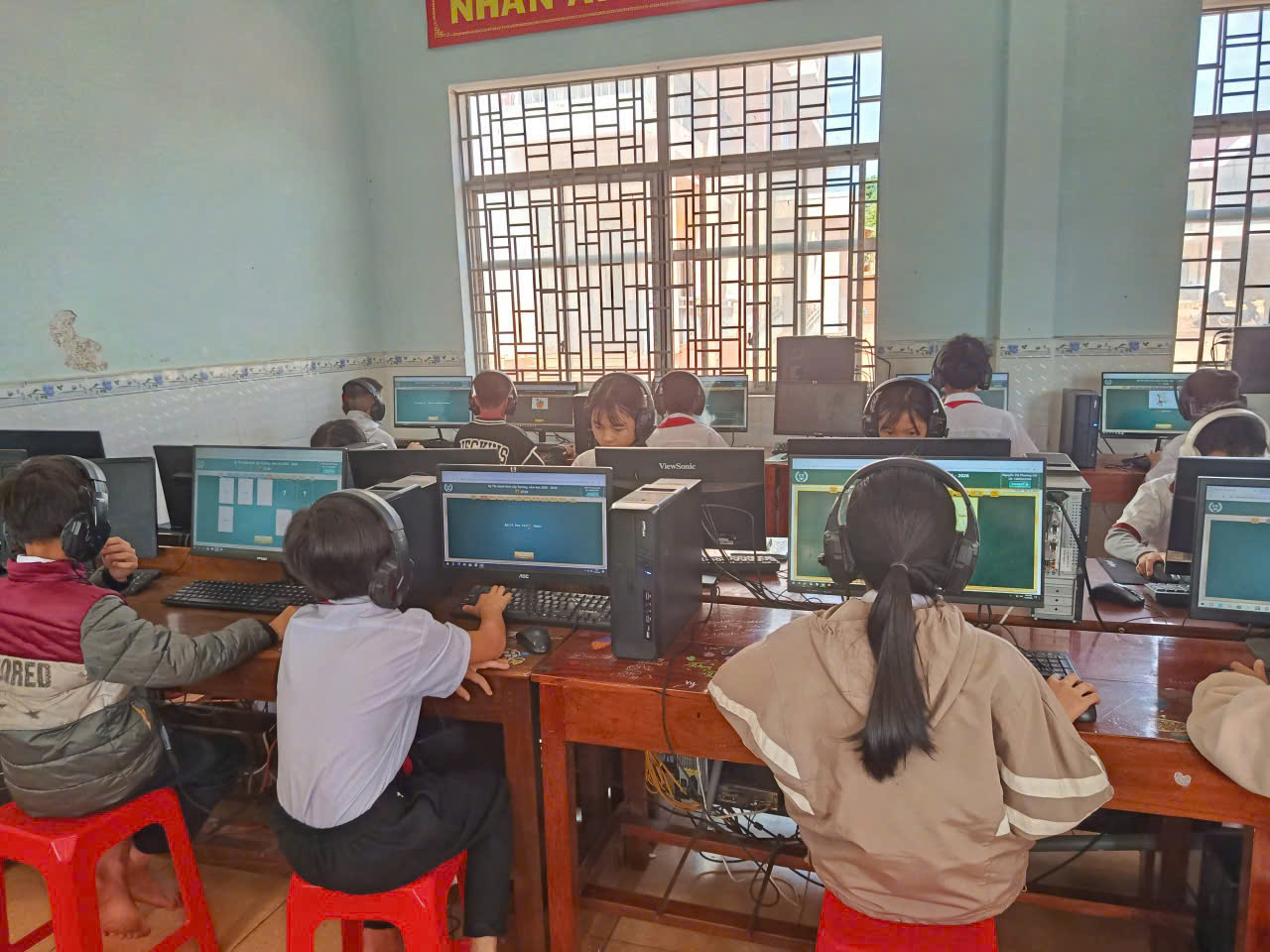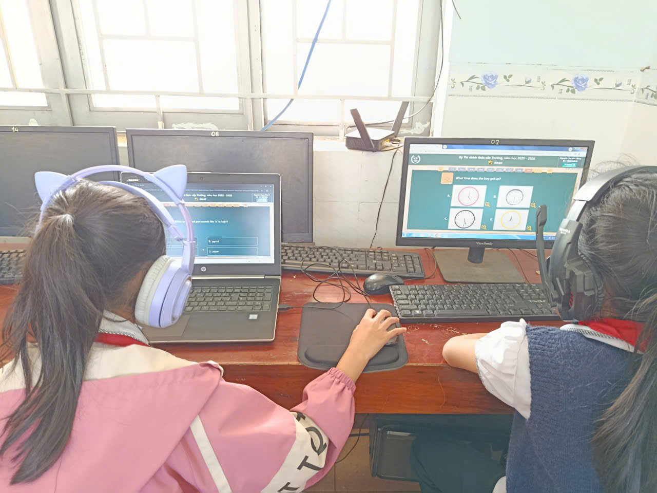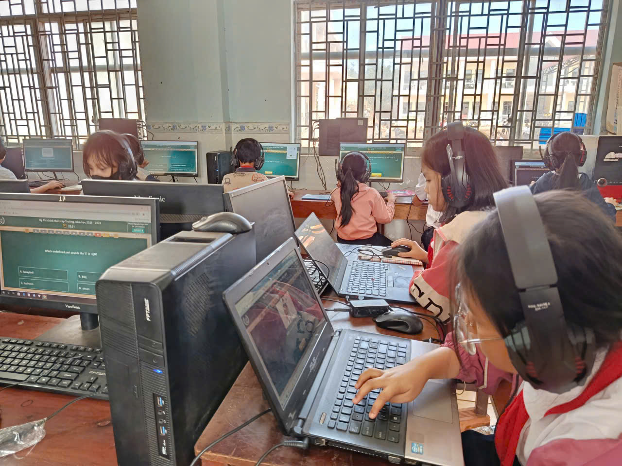 🩷Các em học sinh đều thực hiện bài thi nghiêm túc, thao tác thành thạo trên máy tính, thể hiện kỹ năng nghe – đọc – phản xạ tiếng Anh tốt. Nhà trường đã chuẩn bị đầy đủ cơ sở vật chất, phòng máy và đường truyền Internet ổn định để kỳ thi diễn ra an toàn, khách quan và đúng quy định.