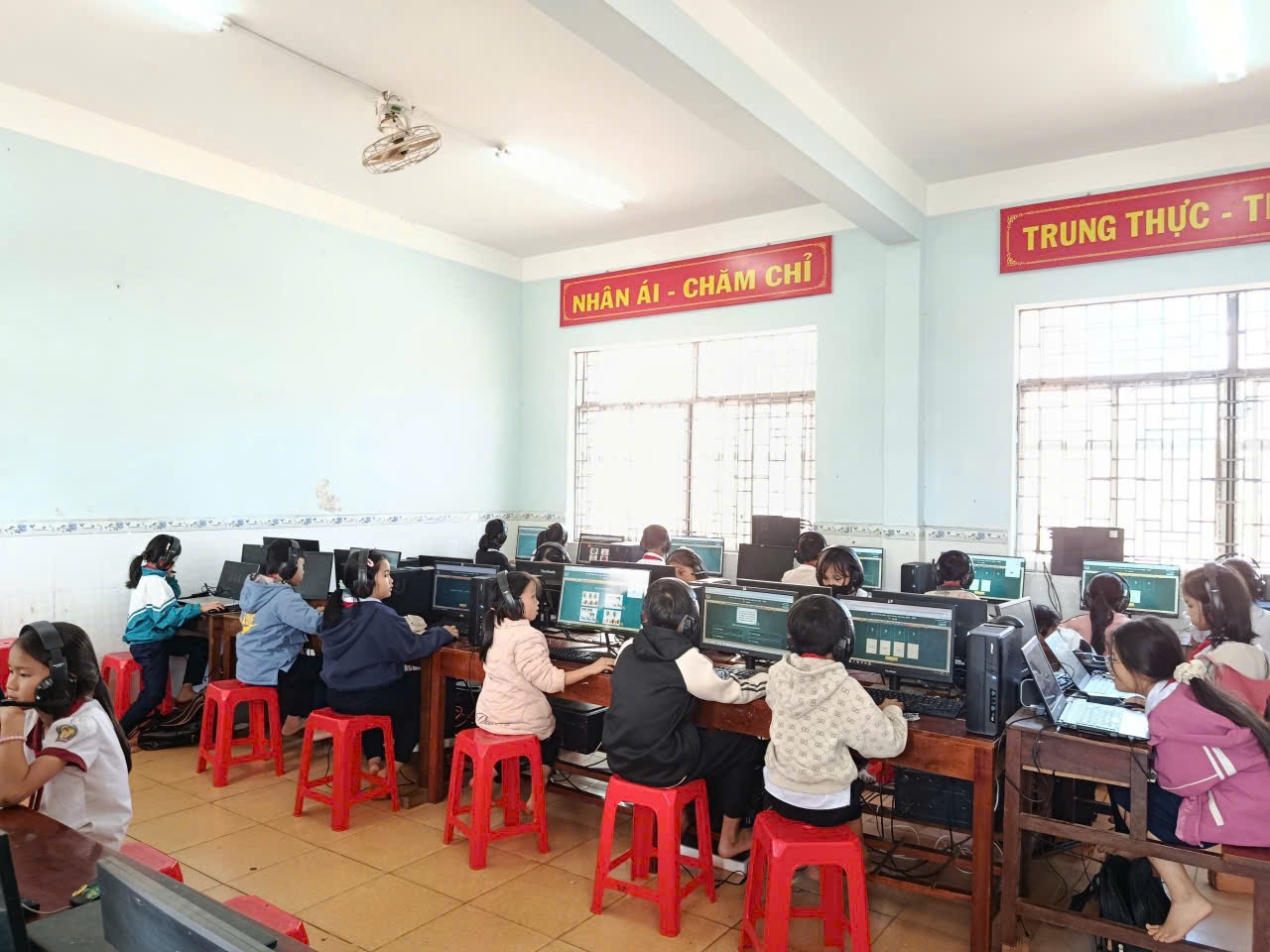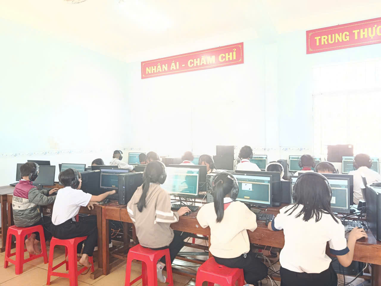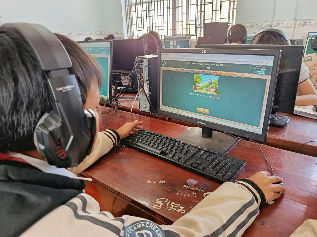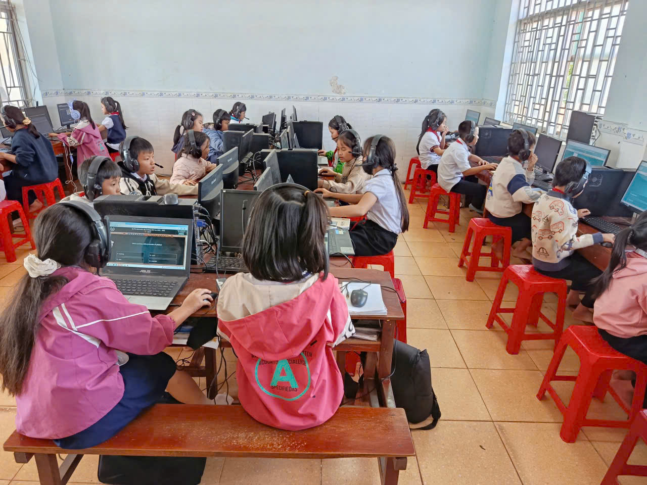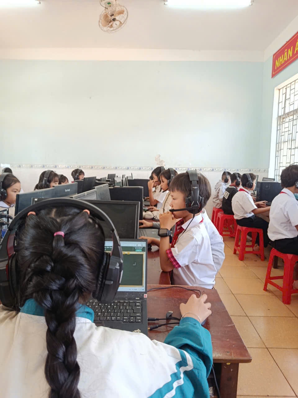 🩷Các em học sinh đều thực hiện bài thi nghiêm túc, thao tác thành thạo trên máy tính, thể hiện kỹ năng nghe – đọc – phản xạ tiếng Anh tốt. Nhà trường đã chuẩn bị đầy đủ cơ sở vật chất, phòng máy và đường truyền Internet ổn định để kỳ thi diễn ra an toàn, khách quan và đúng quy định.