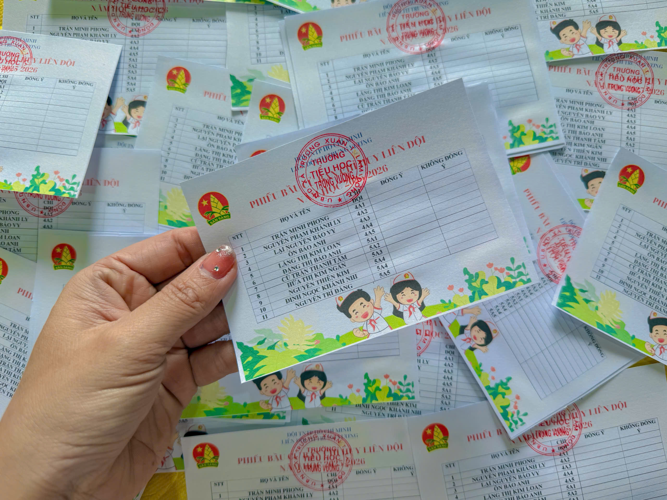 Trong không khí trang nghiêm nhưng cũng đầy sôi nổi 💕, Đại hội đã thảo luận, biểu quyết nhiều nội dung quan trọng 📑. Đặc biệt, với tinh thần dân chủ, đoàn kết và trách nhiệm, Đại hội đã tiến hành bầu chọn 10 bạn ưu tú vào Ban Chỉ huy Liên Đội nhiệm kỳ 2025 – 2026 👏👏. Đây là những gương mặt sáng ngời, xứng đáng gánh vác trọng trách dẫn dắt phong trào Đội của liên đội ngày càng phát triển mạnh mẽ 🌟.