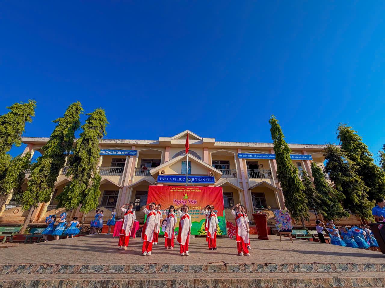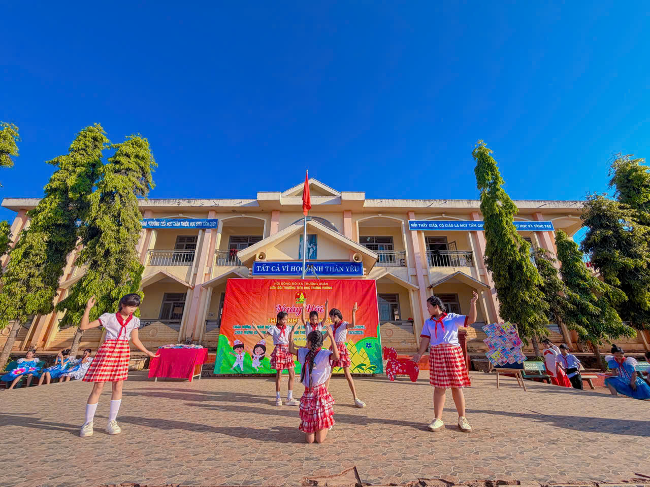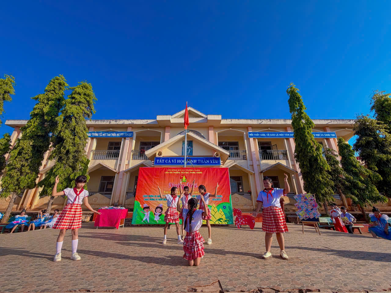 Chương trình mở đầu với các tiết mục văn nghệ đặc sắc, được dàn dựng công phu, tạo nên bầu không khí sôi nổi và hứng khởi. Tiếp theo là đồng diễn múa hát sân trường với sự tham gia của đông đảo học sinh, thể hiện tinh thần đoàn kết và năng lượng tích cực của thiếu nhi Trưng Vương.